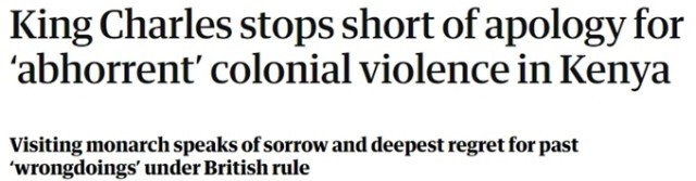 英媒还特别提到,英国国王查尔斯三世近期访问肯尼亚期间,虽然承认英国在历史上“对肯尼亚人采取了令人憎恶的、不合理的殖民暴力行为”,但却没有做出正式道歉。